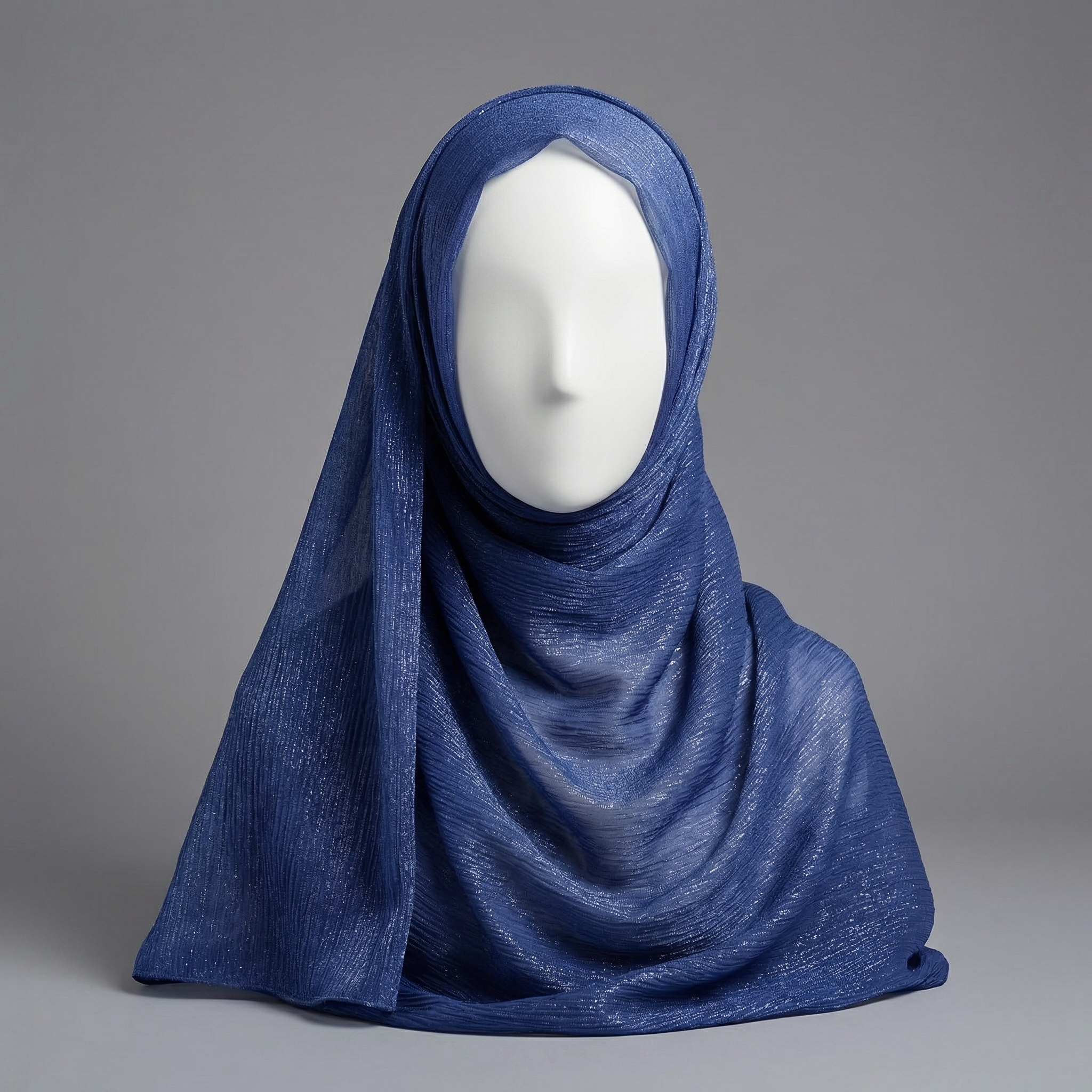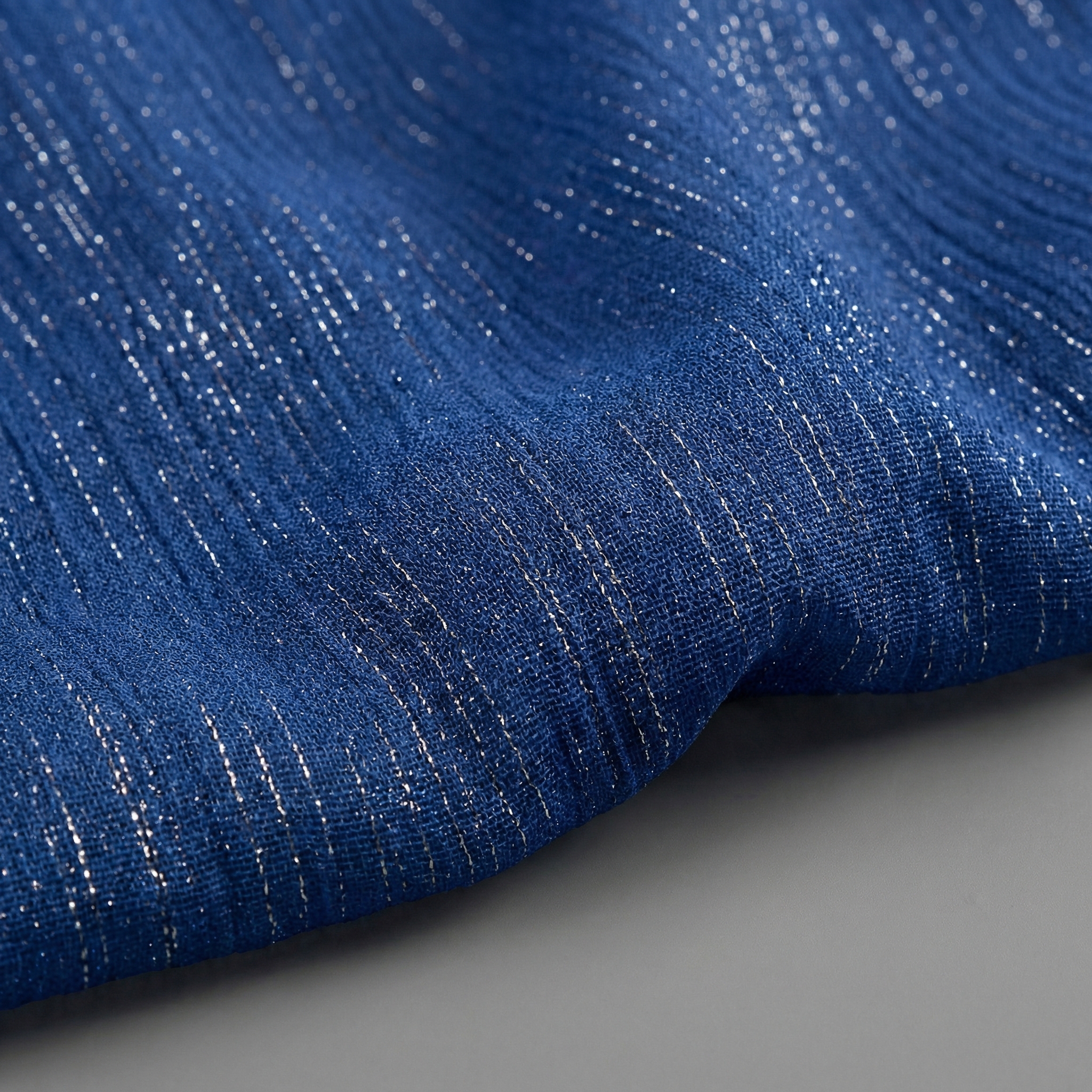 Deep navy with fine shimmer for a bold, timeless finish. Drapes beautifully and pairs effortlessly with both pastel and dark outfits.